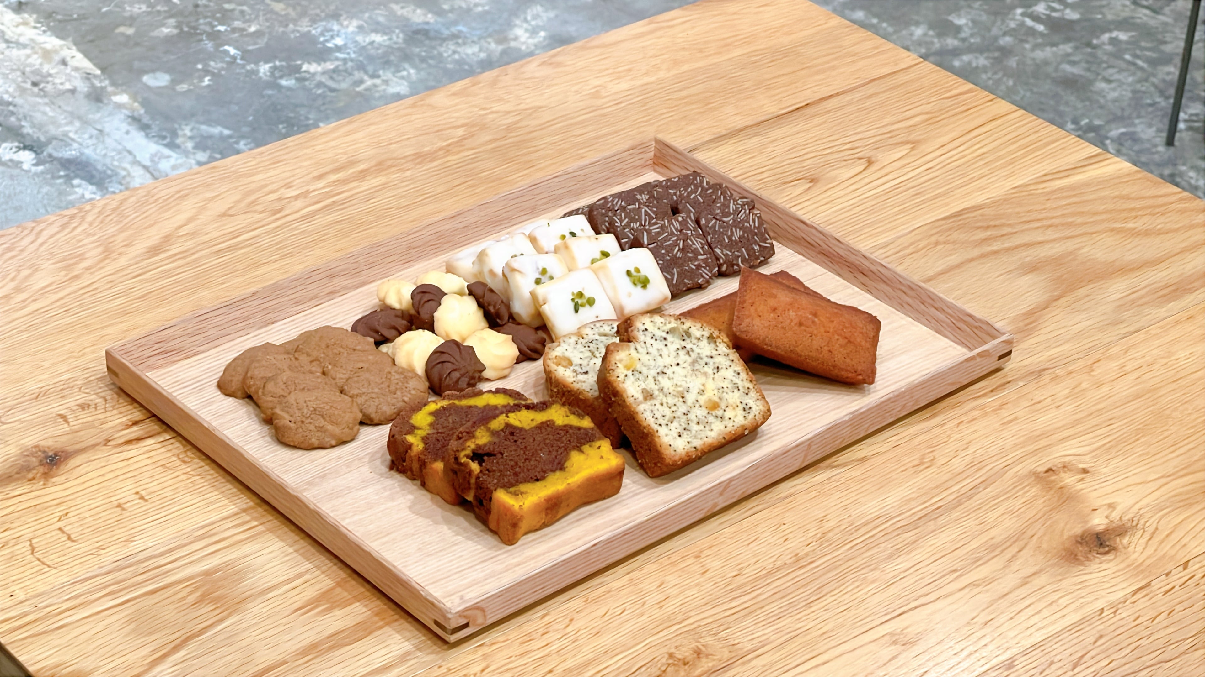 人気の焼き菓子と色鮮やかなタオルをギフトに。 ◆フィナンシエ 焦がし発酵バターを使ったフランスの伝統菓子。 しっとり感が絶妙な投手の焼き菓子人気No.1商品。 (原材料:バター、卵、グラニュー糖、アーモンドパウダー、小麦粉、蜂蜜) ◆オレンジと紅茶のパウンド オレンジの皮を細かくカットし甘く似たものと、香り高いアールグレイを茶葉ごと混ぜて焼いた至福のパウンド。 (原材料:バター、卵、薄力粉、グラニュー糖、オレンジ、アールグレイ) ◆レモンのショートブレッド 砂糖につけたレモンの皮を細かくカットして生地に混ぜ込み、レモンケーキをイメージして上にアイシングをかけた甘酸っぱいクッキー。 (原材料:薄力粉、バター、グラニュー糖、レモン、ピスタチオ、塩) ◆フェイスタオル のこり福 染める前の綿のもままの無垢(白)。そこに廃棄されがちな「のこりもの」ー 例えばワインの澱や地ビールの残液、抹茶の不要部分などの自然素材由来の染料を使って染めたタオルシリーズ。 繊維の優れた「泉州タオル」を使用しており、肌にも環境にも優しい商品です。 サイズ:33×80cm カラー:無垢(白),ワイン(赤)、抹茶(緑)、地ビール(茶) 〔賞味期限〕 焼き菓子:発送日より常温で10日間